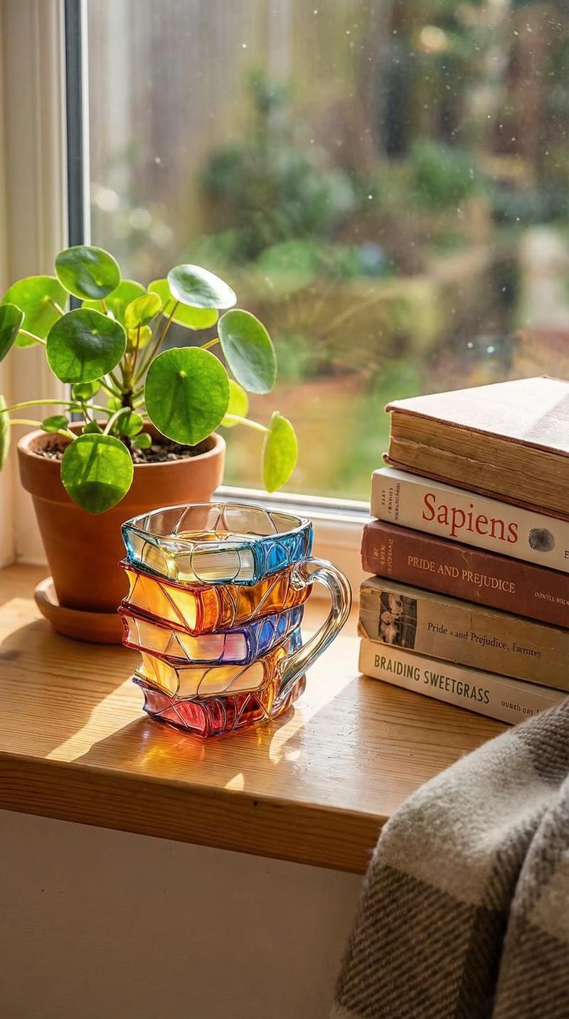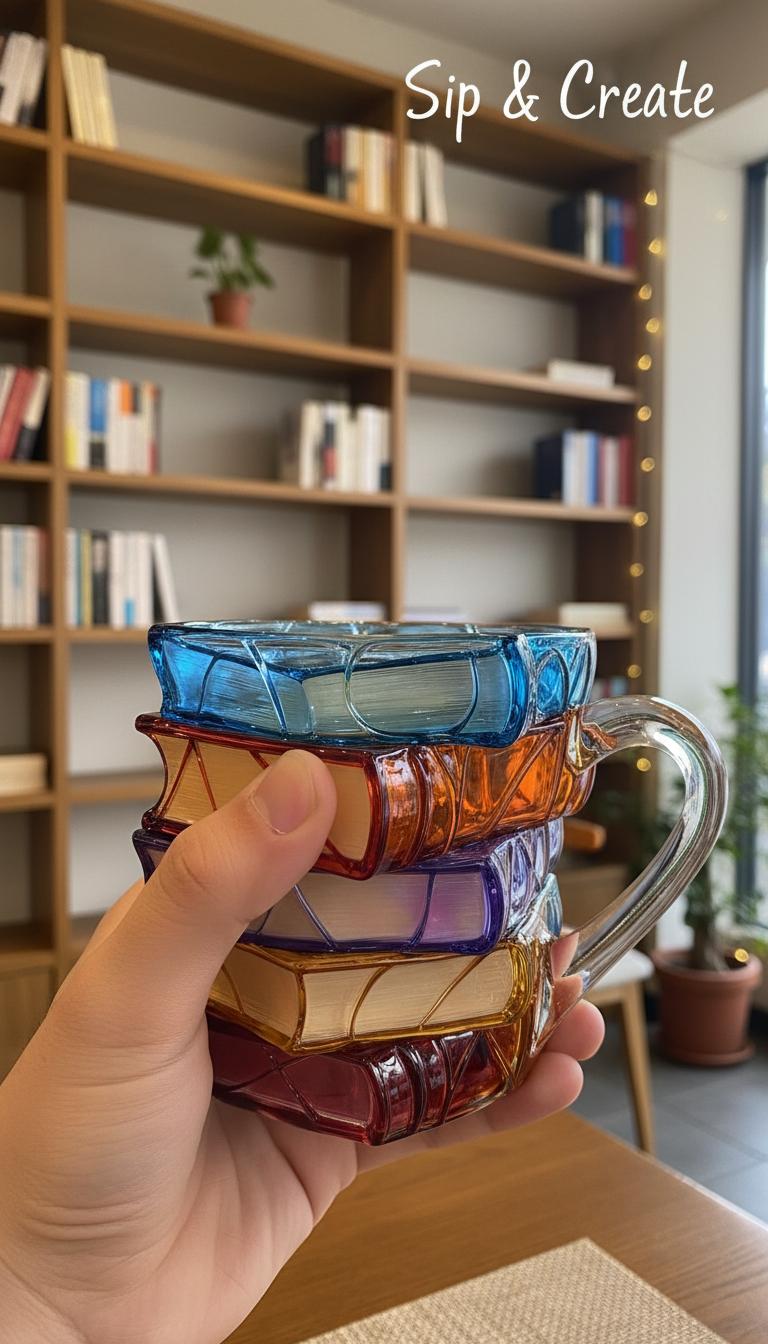 This 3D ceramic book mug features a unique stacked books design, perfect for book lovers. The creative design adds a literary touch to your drinkware. It's an ideal gift for book enthusiasts.
