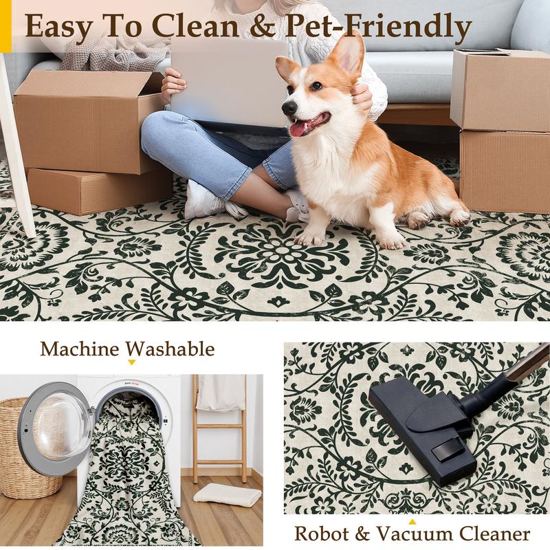 PureCozy Washable Floral Area Rug