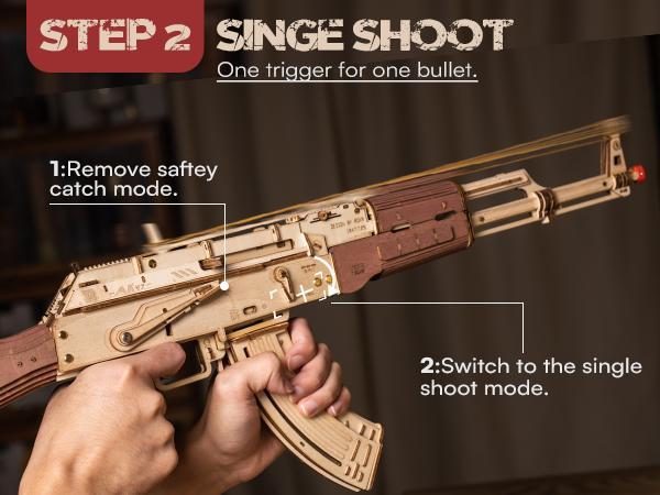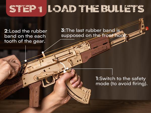 ROKR 3D Puzzles for Adults Wooden AK47 Model with Rubber Bands and Detachable Magazine Creative DIY Building Kits for Men Women Christmas Gifts