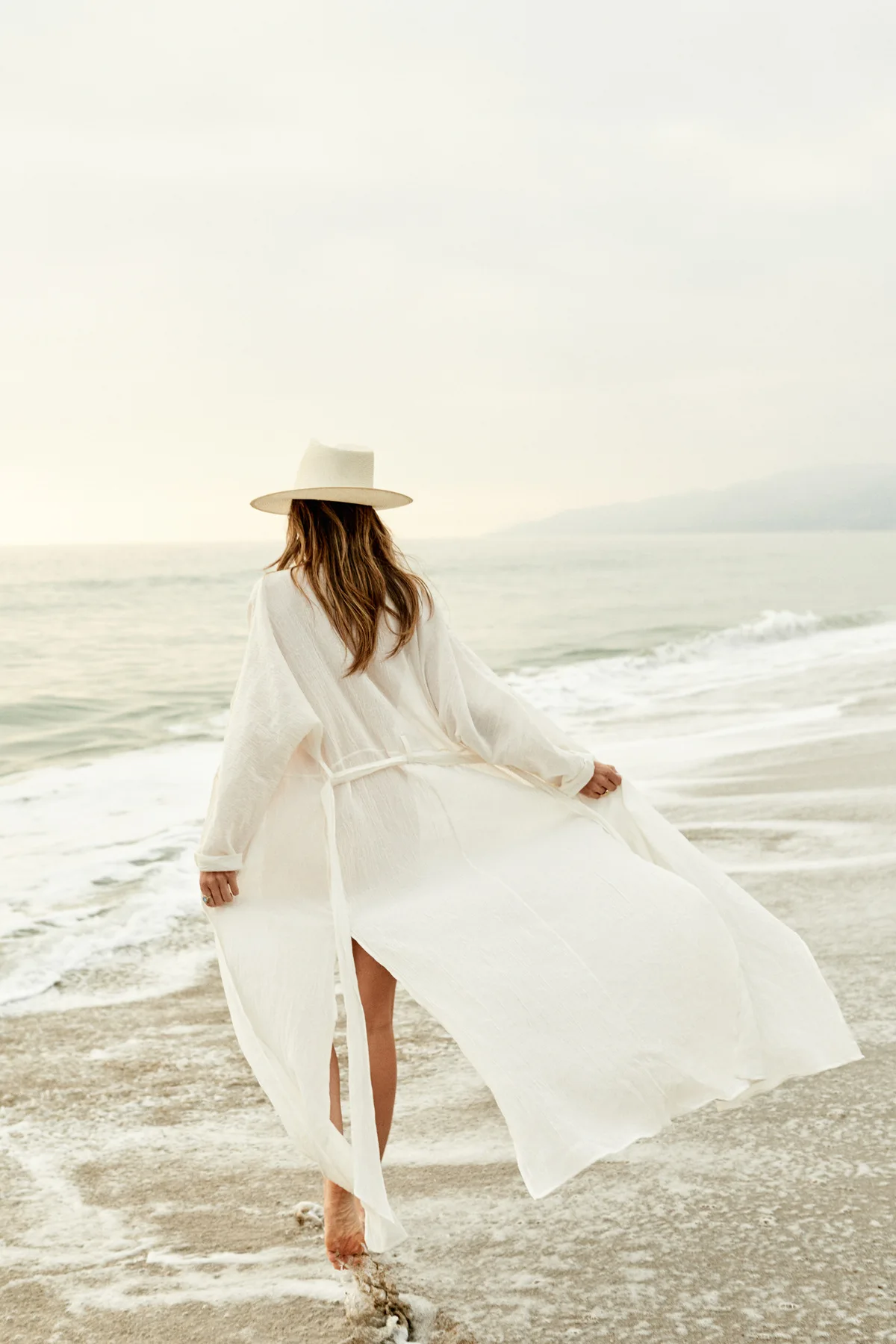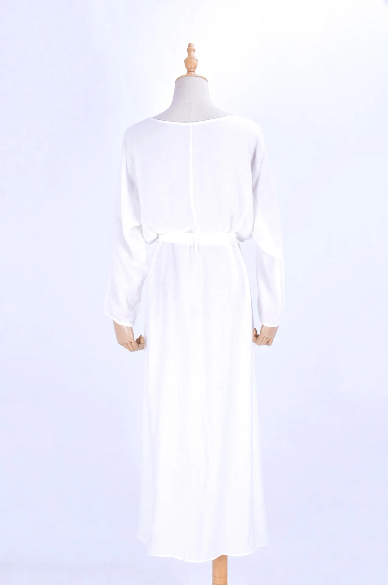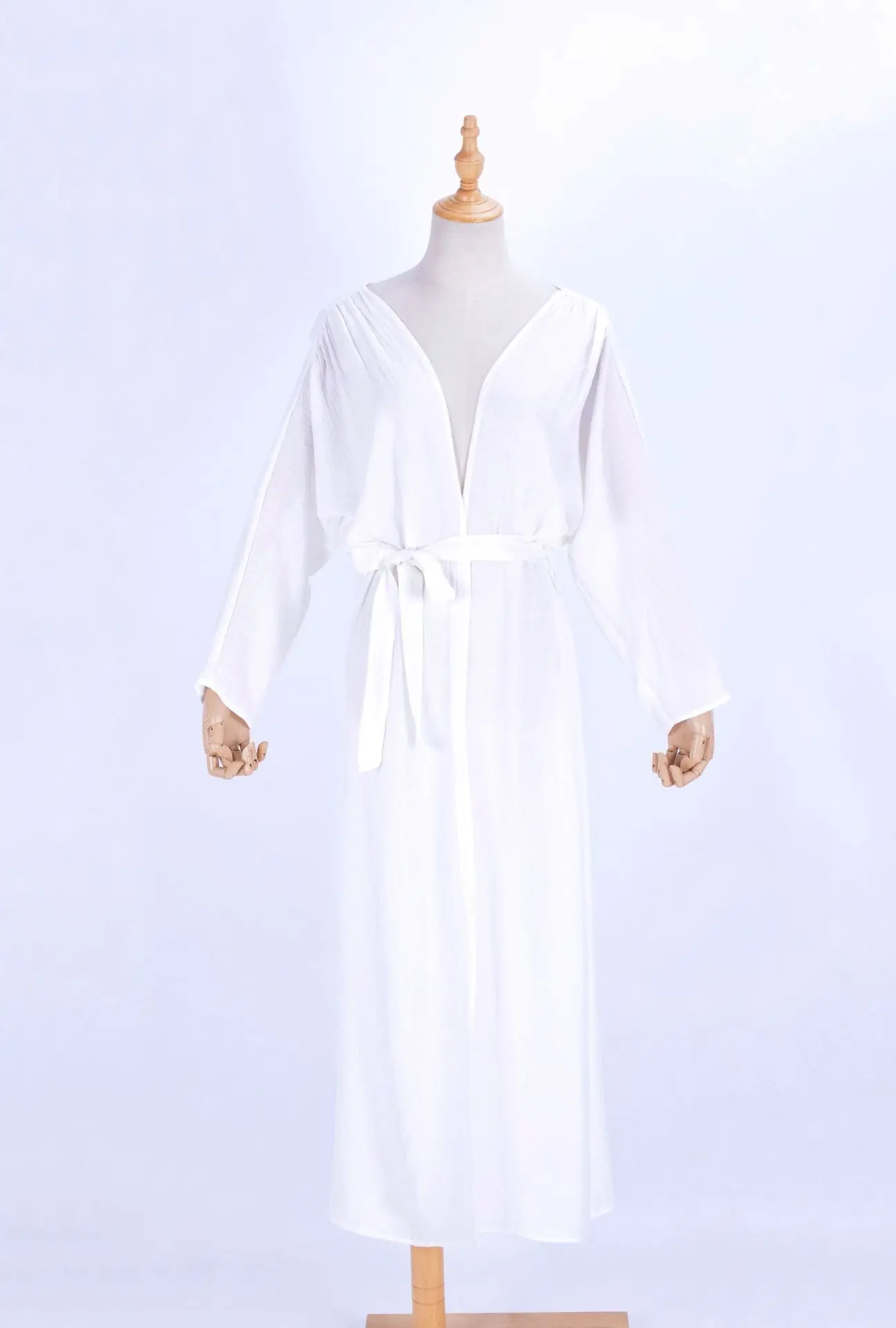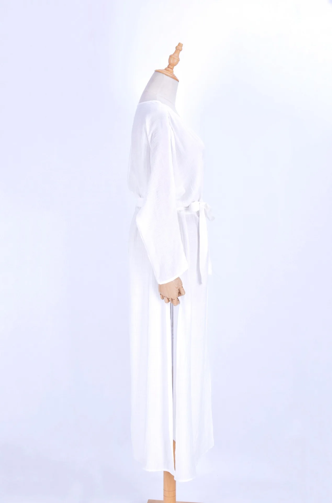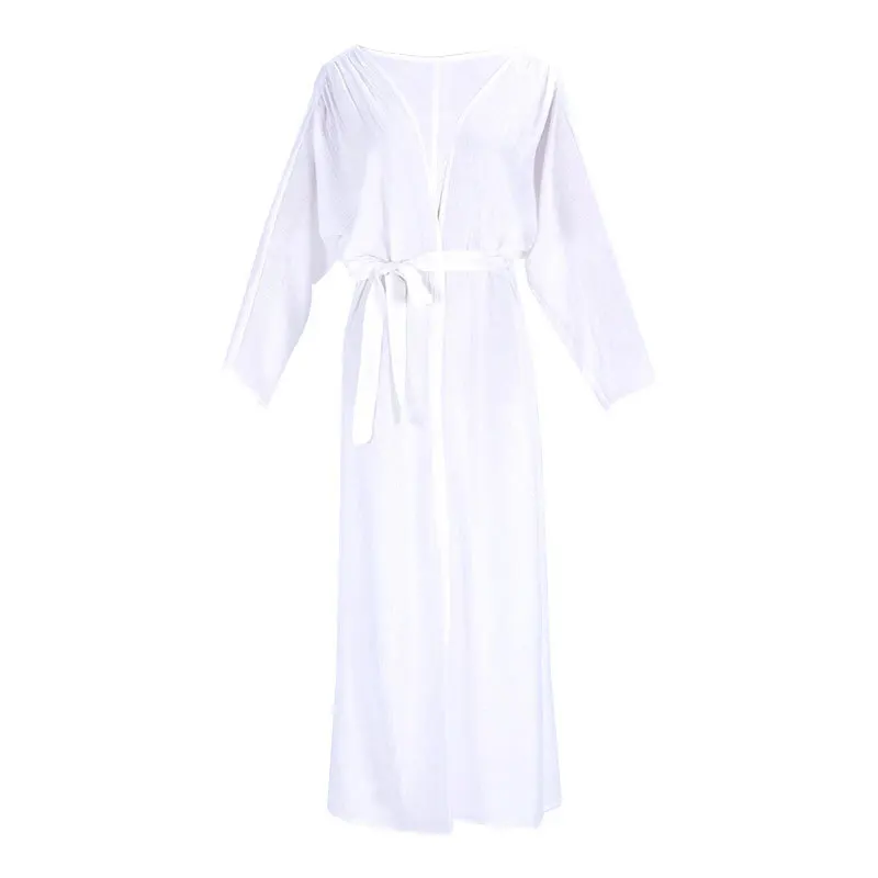 Solid Pattern White Crepe Long Sleeve Bathing Robe Plunge Neck Beach Bikini Cover Quick Dry 3-Piece Plus Size Set High Quality