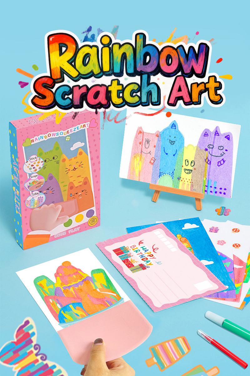 [Xmasgifts] Rainbow Dots Scratch Art DIY Children'S Bookmark Craft Kit 20 Postcards 1 Sticker 14 Paints 6 Watercolor Pens 1 Tool Educational Toy for Ages 3+ Christmas Gift